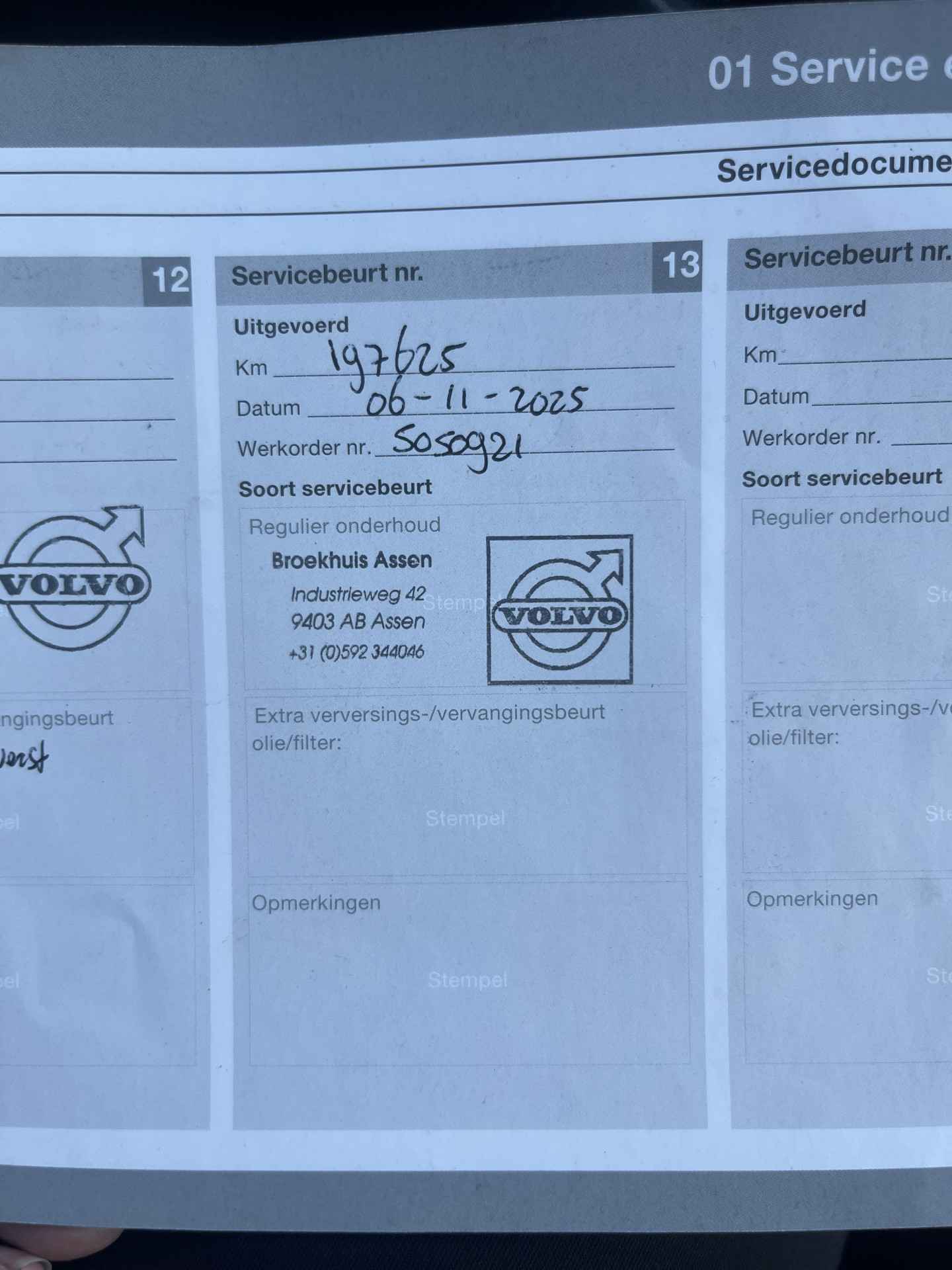 Laatste onderhoudsbeurt bij 197.625 km, 06-11-2025.